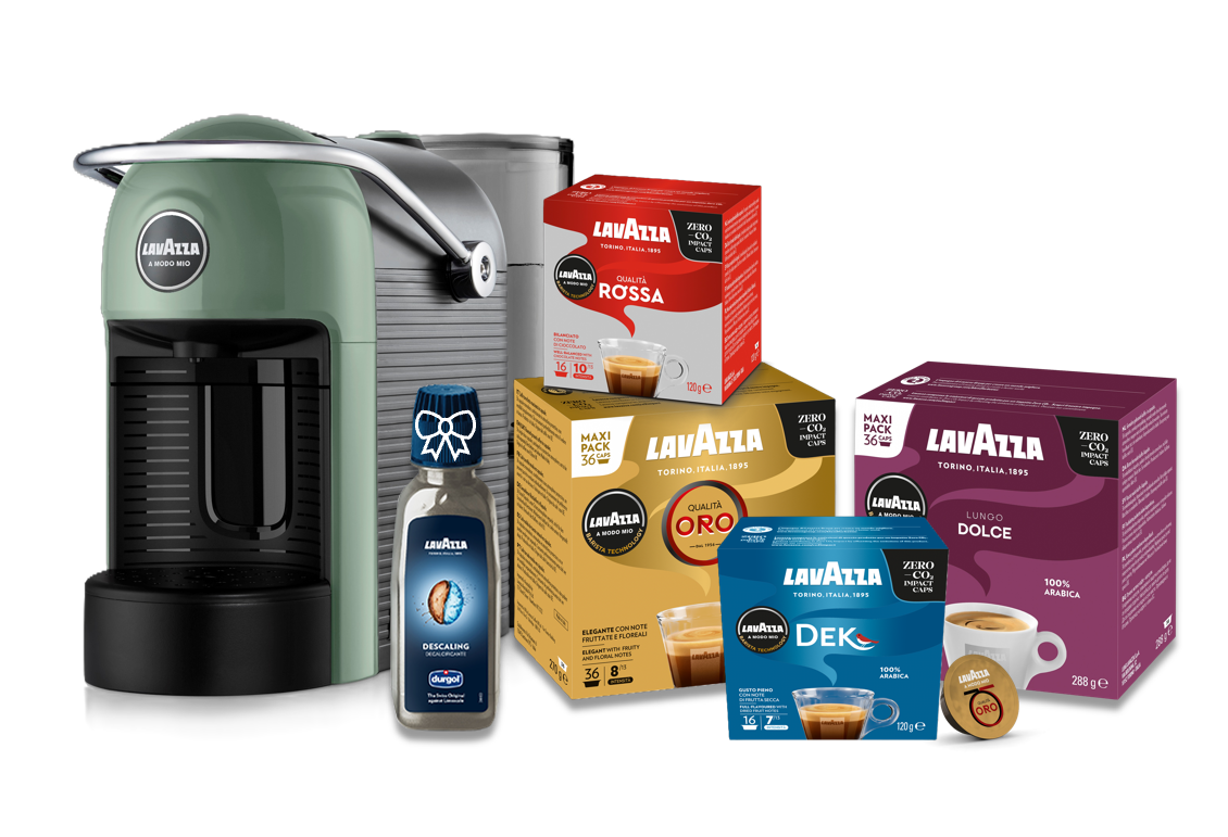 Dāvanā iekļautas 104 Lavazza A Modo Mio kapsulas – izvēle tavās rokās + atkaļķotājs.